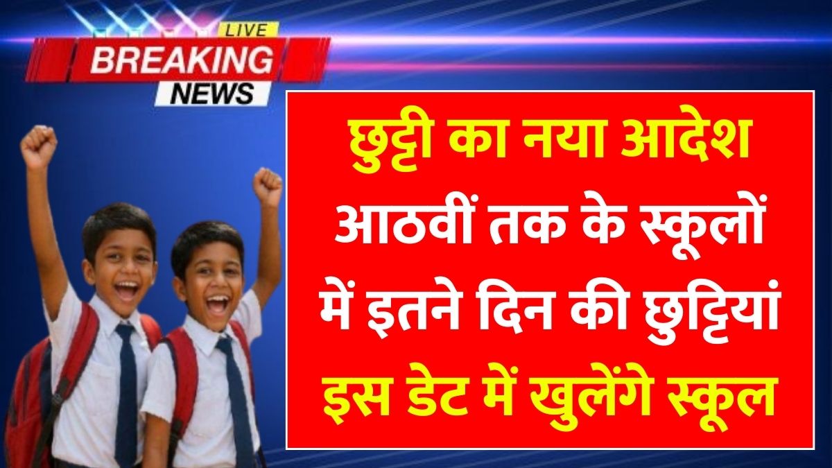स्कूल छुट्टियों पर बड़ा अपडेट: कक्षा 8 तक के छात्रों को इतने दिनों का अवकाश, इस दिन से खुलेंगे स्कूल | Big update on school holidays