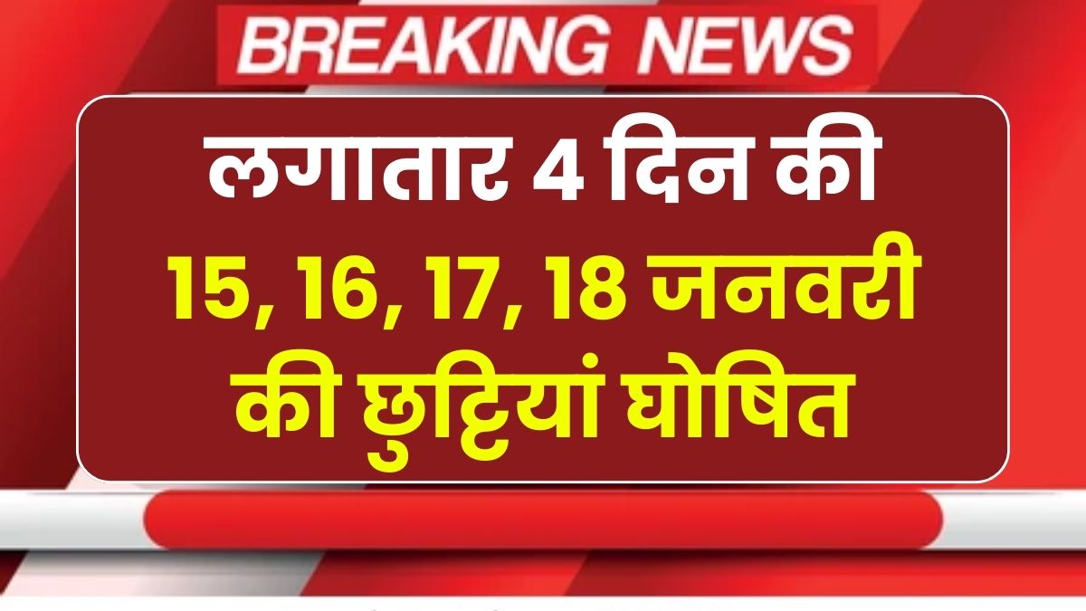 लगातार 4 दिन की 15, 16, 17, 18 जनवरी की छुट्टियां घोषित, अभी अभी आदेश जारी | School Holidays