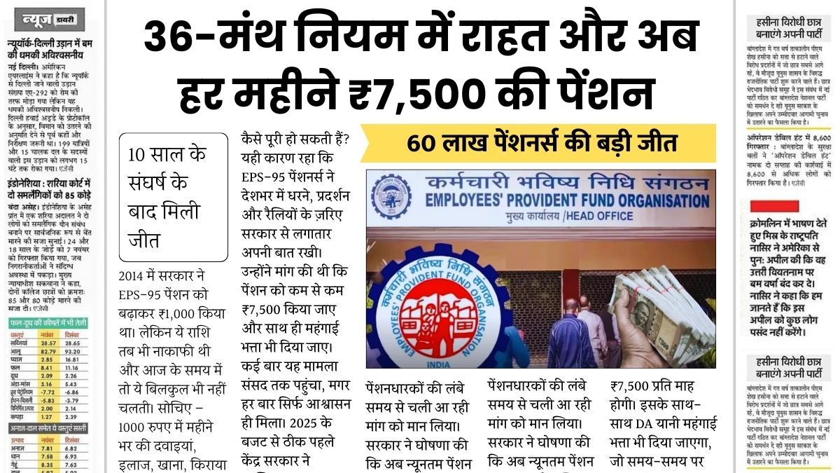 EPFO Pension Scheme – 36-मंथ नियम में राहत और अब हर महीने ₹7,500 की पेंशन
